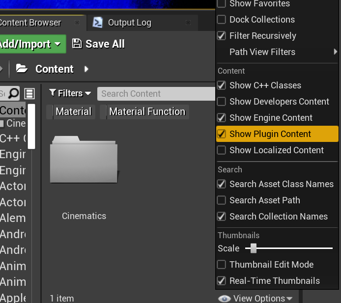 First of all you need to activate the plugin from the editor plugins menu, then enable visibility of Engine content and Plugin content for your content browser.